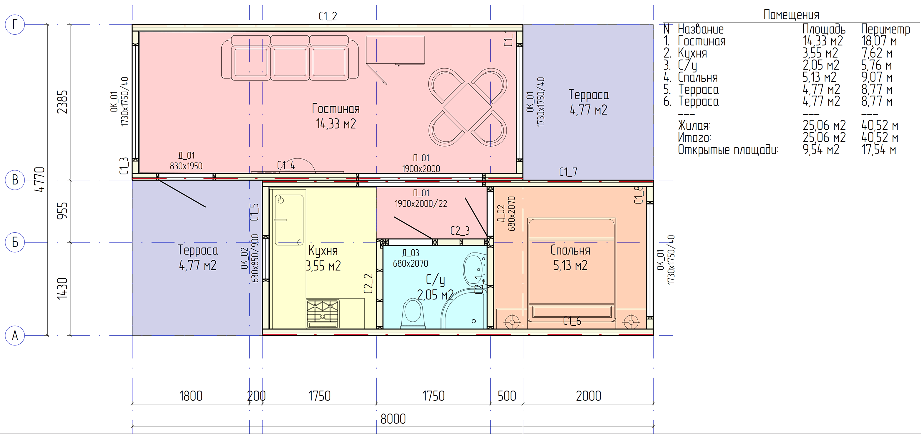 - Увеличенная площадь 40 м²- Пинап пространства для комфортной жизни